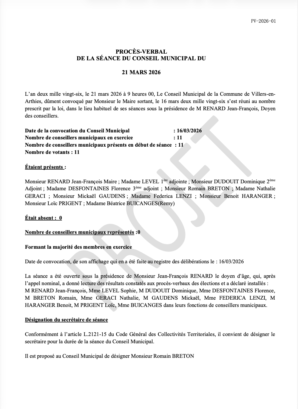 Procès-verbal du Conseil Municipal du 21 mars 2026 — Version provisoire