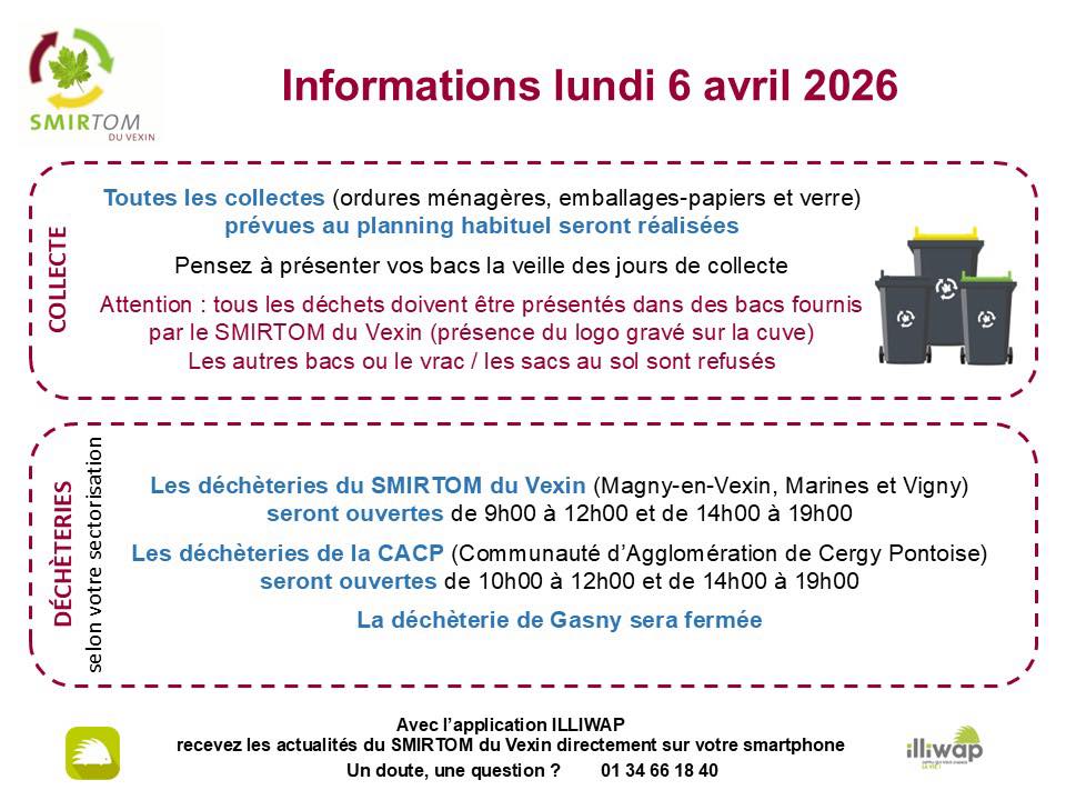 SMIRTOM du Vexin – Déchèteries & Collecte lundi de Pâques